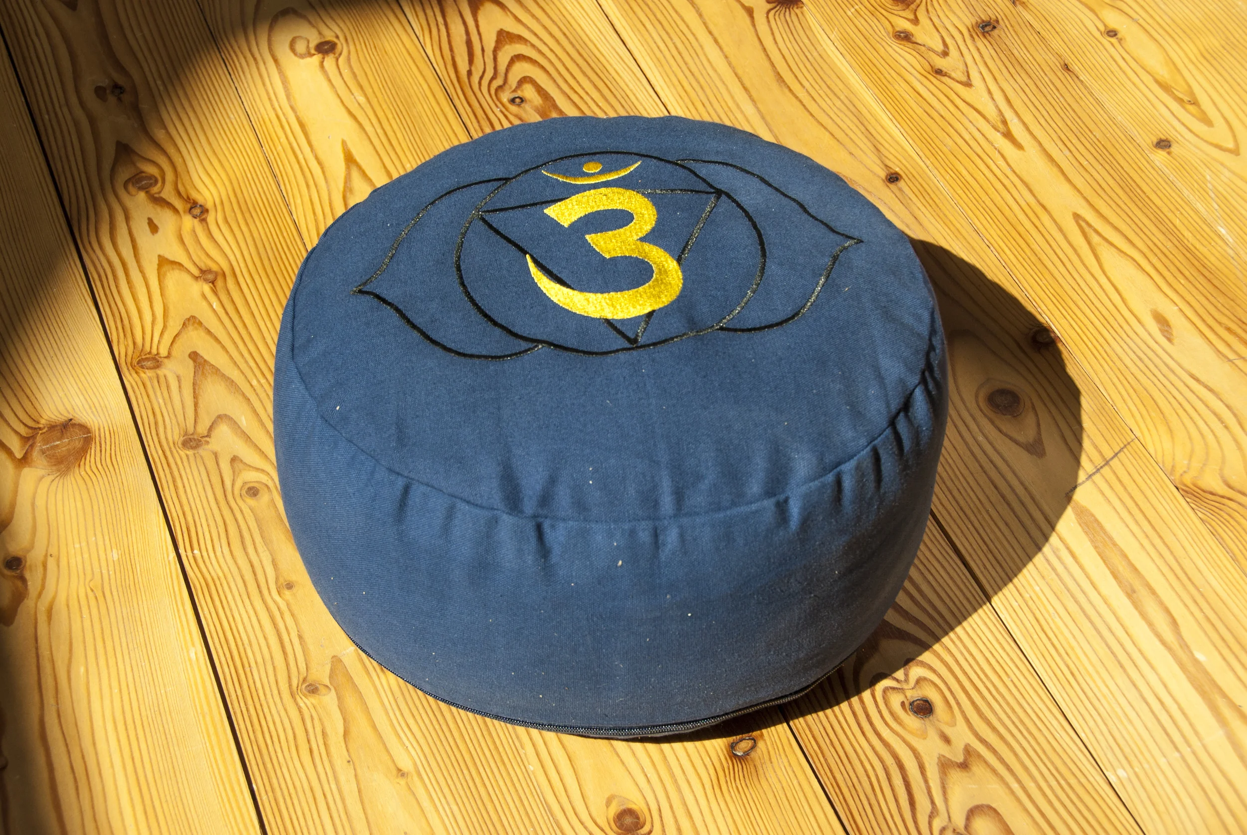 Meditieren mit Klarheit – dieses tiefblaue Meditationskissen mit feinsticktem Stirnchakra-Symbol (Ajna) unterstützt die Konzentration, Intuition und geistige Ausrichtung. Das Kissen ist fest befüllt mit Buchweizenspelz und bietet mit seinen Maßen von 36 cm Durchmesser und 15 cm Höhe eine stabile und komfortable Sitzunterlage für jede Meditationspraxis.